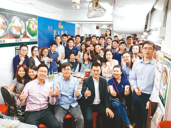 ■劉鳴煒(前排左三)出席青年民建聯舉辦的「名人飯局」。