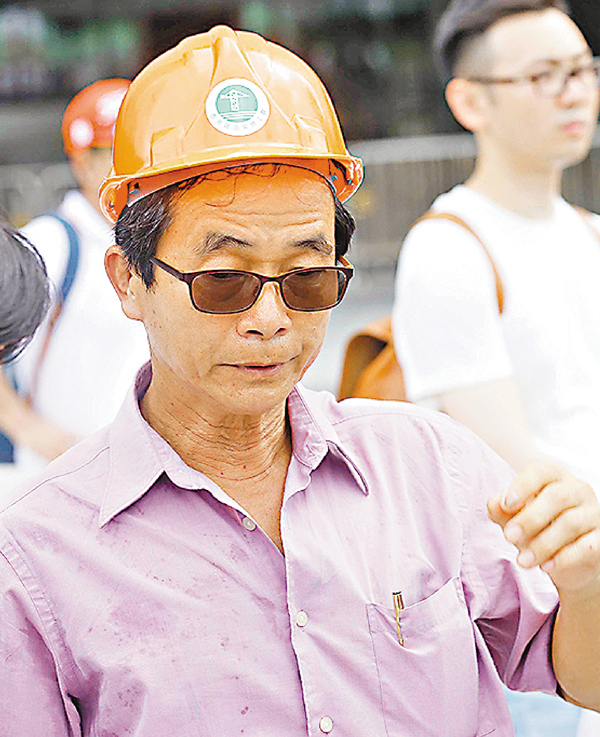 ■地盤釘板工梁先生。劉國權 攝