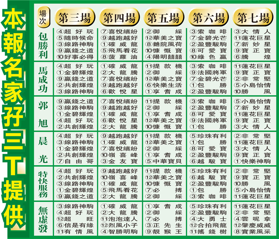 周三快活谷八場草地夜賽排位表 (圖)
