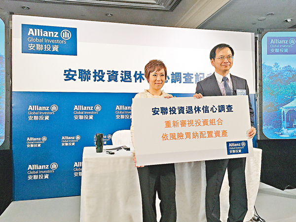 ■安聯投資退休信心調查。左起安聯投資客戶服務主管馬鎂渲、經濟學者林本利。 記者吳婉玲 攝