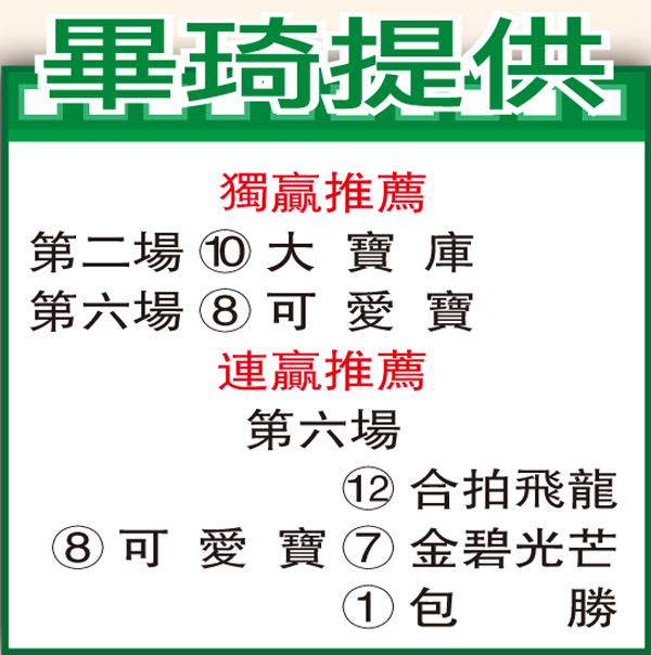 「大寶庫」助手踱一圈,試來小心翼翼,落腳彈力十足,精神奕奕火氣旺盛,毛水有光澤,狀態更見勇銳。