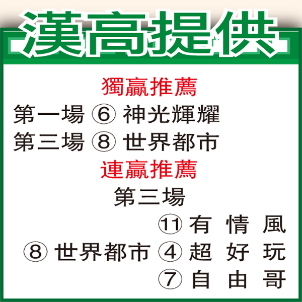 「神光輝耀」助手踱一圈,貼欄而回,出腳靈活有勁,精神奕奕,毛色立立令,氣勢旺盛,近期勇況確係撩人。