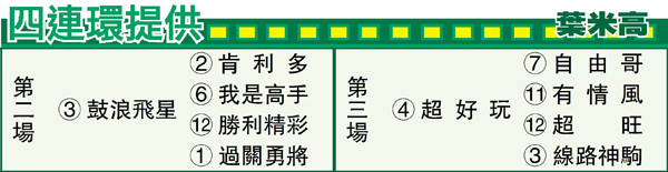 第三場、第四班、一二○○米。「超好玩」向來口勁甚重,晨課及試閘總是搶住走,未能正確地運用力度,如火車頭般只向前衝,前仗跑田草千二米,頭兩段造四十六秒四六,比同日另外兩場三班賽快超過半秒,直路一程自自然然變軟腳蟹力弱墮退,落敗亦合情合理,賽後更驗出氣管有痰,更加非戰之罪。之後轉投何良馬房發展,新倉接手後晨課立即用馬定基教馬匹留力,表現漸見收斂,四歲質新馬進度納入正軌,與「飛來猛」及「世澤之星」同父,四班遲早留唔住。上次轉倉初出排三檔起步,順利在谷中千二米贏馬開齋省靚招牌,復課馬房安排試課大閘,狀態成熟程度再進一步,新勝只加六分不用升班,估計交出水準有力再下一城。