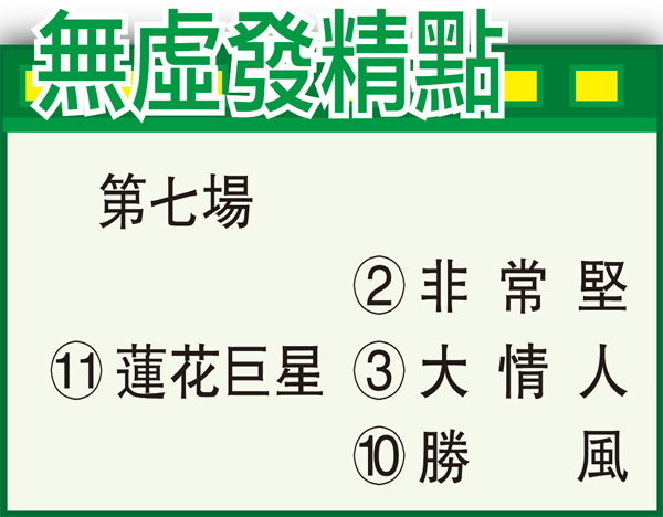 「蓮花巨星」與昔日三料馬王「威爾頓」線路息息相關,也是名牌綵衣的二代,馬主本身也是娛圈中人,不過一直以來都未受注意而已。細看「蓮花巨星」來港前賽績不算特別,只在英國唐加士達馬場贏過一場千四米直路賽就運港,級數未算證明太多,但幕後仍然肯引入,相信認定有一定質素並適合香港的競賽環境。此駒去季來港在容天鵬馬房時兩戰無功而還,今季未轉馬房之前,合共已上陣七次,成績未如理想,從未入三甲,最終馬主按捺不住替愛駒他投,而大摩與馬主家族既然合作已久,加盟大摩亦理所當然,另一方面反映出馬主心急求變意識,自然希望盡快交代,果然新倉接後短時間內兩戰俱跑得第二名,盡見大摩功力,今次轉來谷草千八米上陣,在接手時間不長的情況下,如果今次渡江真有突飛猛進演出,真係不得不向大摩寫一個服字。配腳可拖「大情人」、「非常堅」及「勝風」。