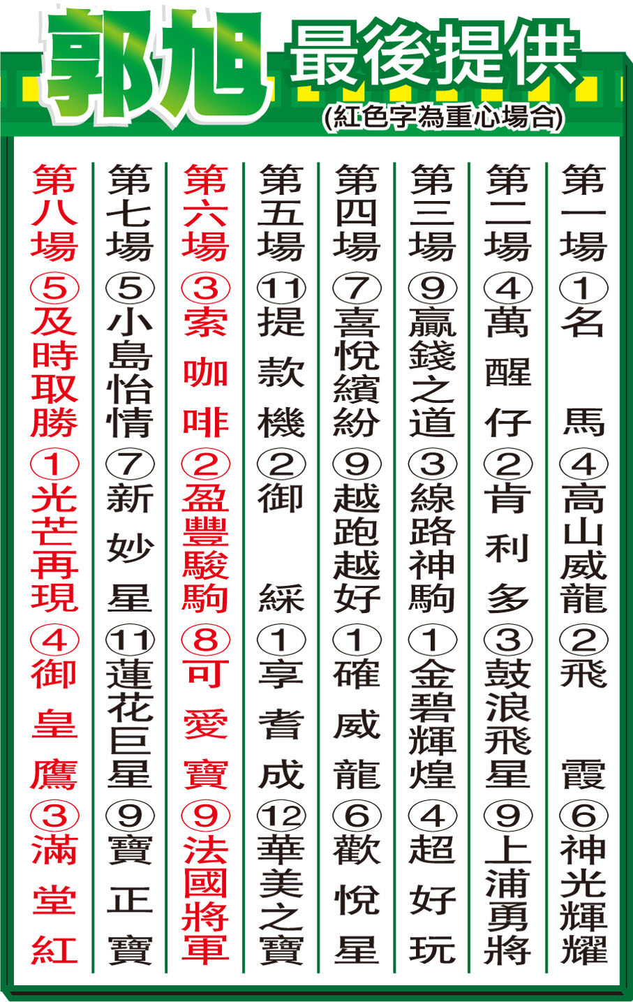 馬場神探各場推介 (圖)