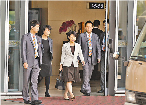 ■台「法務部」明日將派團赴陸商討電騙案事宜。圖為早前陳文琪等人抵達北京與大陸公安機關進行協商。 中新社