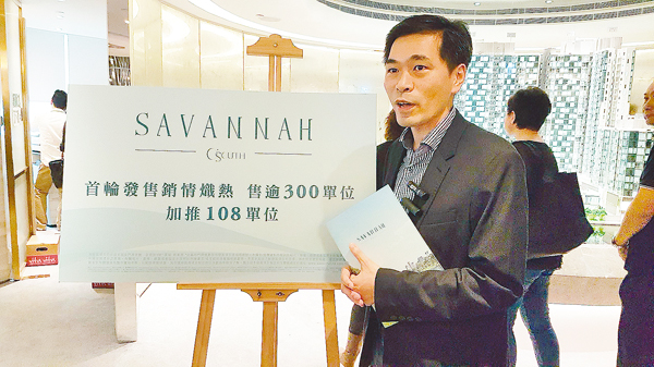 SAVANNAH首日開賣沽出八成半貨,黃光耀和地產代理高層開香檳慶祝。咁又係,上次何文