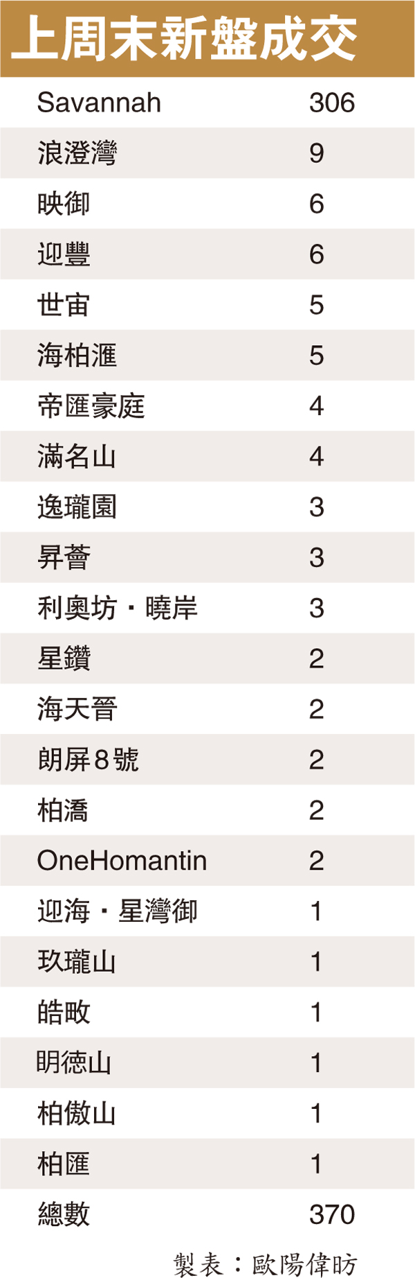 上周末新盤成交 (圖)