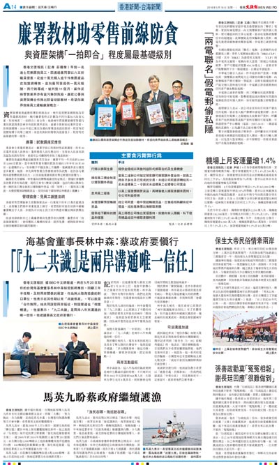 談到最近涉及「電信詐騙」而被大陸移送至北京與珠海受審的台灣籍嫌犯,對於記者問到「能否在『5.20』前順利遣返」時,他表示「都在積極協商,目前我們至少希望家屬都能探視,他們也基本同意」。他認為,這一系列的電信詐騙案,台灣當局也有想積極地去跟大陸交涉,「政府不會因為團隊即將卸任就怠惰」。