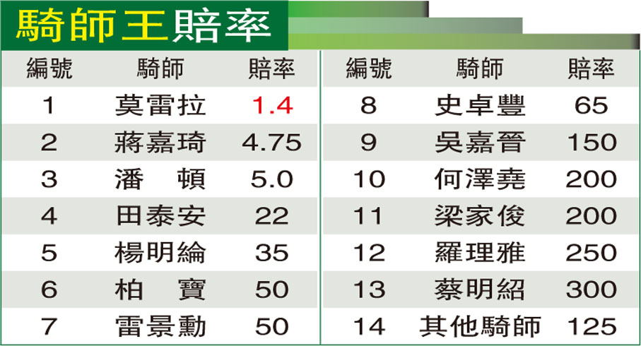 今晚快活谷九場草地賽賠率表 (2016-05-18) (圖)