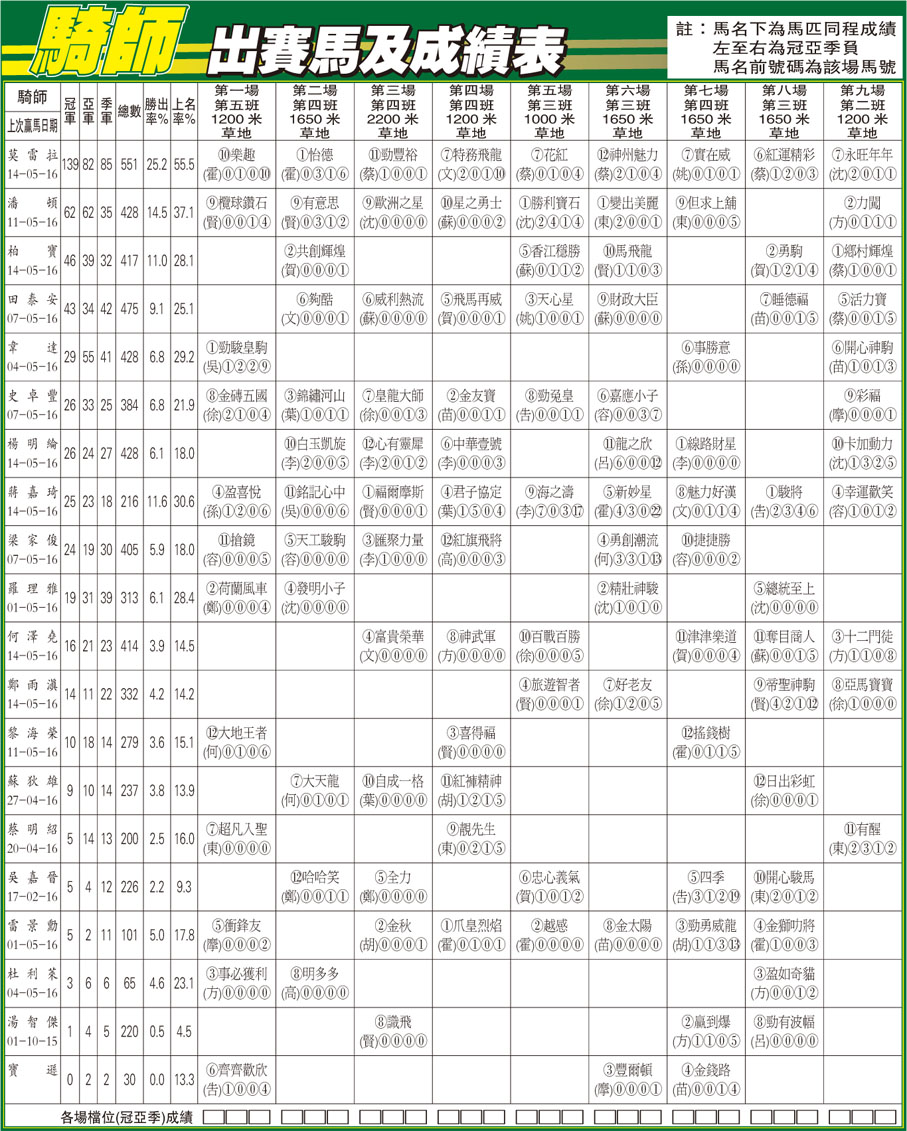 練馬師出賽馬及成績表 (2016-05-18) (圖)