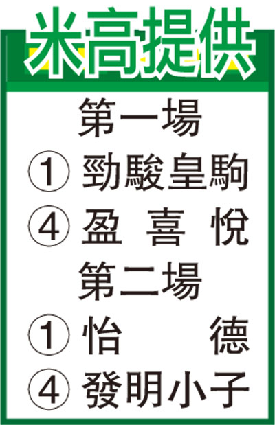 第一場、第五班、一二○○米。「勁駿皇駒」前仗在同程以半馬位擊敗對手,雖然上仗不放而留未能爭入三甲,但仍跑獲第五名表現不差,汲取教訓後今仗只要肯跟前跑,有力先拔頭籌。「盈喜悅」過去曾經有鋪拋跌騎師的癮,但近期肯專心作戰,表現立即大為改善,近兩仗更在谷草千二米取得一冠一亞,五歲馬大熟大勇,換上蔣嘉琦減七磅優勢更大,假如前駒有閃失即可代之而起。