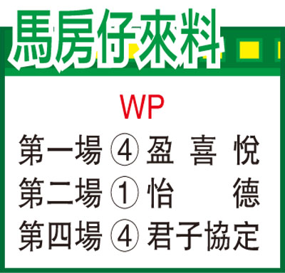 第四場、第四班、一二○○米。「君子協定」上場配蔣嘉琦在這個路程排劣檔出閘,起步便搶前領放,就此一放到底取得一席第二名,敗給「好運有利」蹄下,狀態開始有復甦跡象,今次磨利再來,蔣嘉琦汲取上場入位經驗後,預料今仗會跑得更佳,排七檔起步,有本錢重振雄風,勝望甚濃。