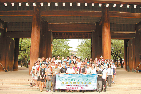 2015¦~8¤ë¡A¿c·~¼Ù¥H»´ä¤¤°ê¸gÀÙµo®i«P¶i·|·|ªø¦W¸q²v35¦W»´ä«C¦~¾Ç¥Í¤@¦æ¦@56¤HuªF¨Ê¶}®i¡u¬ö©À§Ü¤é¾Ôª§³Ó§Q¤C¤Q©P¦~--»´ä«C¦~¾Ç¥Í¤é¥»¦Ò¹î¾Ç²ß¤§®È¡v¡C³o¬O»´ä¦³¥v¥H¨Ó²Ä¤@Ó¥H¬ö©À§Ü¤é¾Ôª§³Ó§Q¦W¸q¡A¨ì¤é¥»¹t°ê¯«ªÀ«e©Ô¾î´T®i¥Ü¹C¾Ç¥DÃDªº«C¦~¾Ç¥Í¦Ò¹î¹Î¡C³q¹L³o¦¸¾Ç²ß¤§®È¡A§Æ±æÅý¾Ç¥Í¦³¾÷·|¿ËÁ{ªF¨Ê¦U¦a¡Aª½Æ[¦a¤F¸Ñ¤¤¤é¾ú¥v¡AÅý¤g¥Í¤gªøªº»´ä¦~»´¤H¨c°O¾ú¥v¡B¤ð§Ñ°ê®¢¡A¾ð¥ß¥Á±Ú¥H¤Î°ê®a»{¦P·P¡A©Ôªñ¾Ç¥Í»P°ê®aªº¶ZÂ÷¡AÅé·|¡u¤¤°ê¤H¡v¤TÓ¦rªº«¶q»P·N¸q¡C