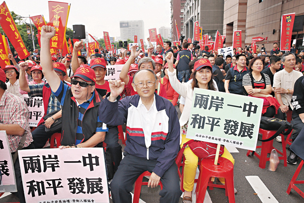 ■民間團體昨日率眾赴民進黨中央黨部,要求新當選人蔡英文及新當局堅持「九二共識」,維護兩岸和平。 中央社