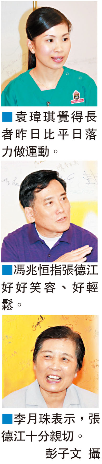 ²{¦~66·³ªº¤j¼Ó¸ê²`¸q¤u¤ÎªøªÌºî¦XªA°È¤¤¤ß·|û¶¾¥üùÚªí¥Ü¡A¬Q¤é¥Dn»P©eûªø¤@°_°µ¹B°Ê¡G¡u§ÚÌ¥®É³£¦³¦^¨Ó°µ¹B°Ê¡A¤µ¡]¬Q¡^¤Ñ°µ¦ù®i¹B°Ê®É¦³¤H¶i¨Ó¡A§Ú̦³¨Ç³£¤£ª¾¹D¥L¬O½Ö¡A¤¶²Ð«á¤~ª¾¹D¥L¬O±i¼w¦¿¡I¥L¦n¦n¯º®e¡B¦n»´ÃP¡B¦n©Mħ¥i¿Ë¡A¤S»P§ÚÌ´¤¤â°Ý¦n¡A¯¬ºÖ§Ṵ́·±d¡C¡v