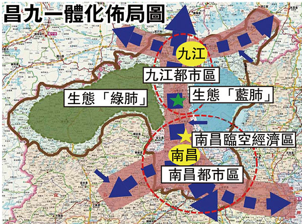 據了解,相鄰的南昌和九江分別是江西省行政中心城市和重要的門戶城市,屬於典型的雙核結構類型。而該行動計劃以昌九一體化為支撐,提升昌九地區整體競爭力和輻射帶動力,涉互聯互通、產業轉型升級、城鎮聯動發展、重大平台建設、開放合作提升、創新驅動協同、公共服務共享、生態文明共建「八大行動」。