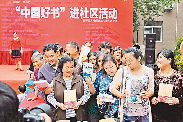 為了讓濃郁書香飄逸社區,打造「書香社區」特色品牌,也為了更好地服務社區居民,讓轄區內的居民多讀書、讀好書。近日,安徽省合肥市常青街道凌大塘社區舉辦「中國好書」進社區活動。活動現場,每位居民獲發一本自己喜歡的「中國好書」系列讀本。 ■香港文匯報記者 趙臣 合肥報道