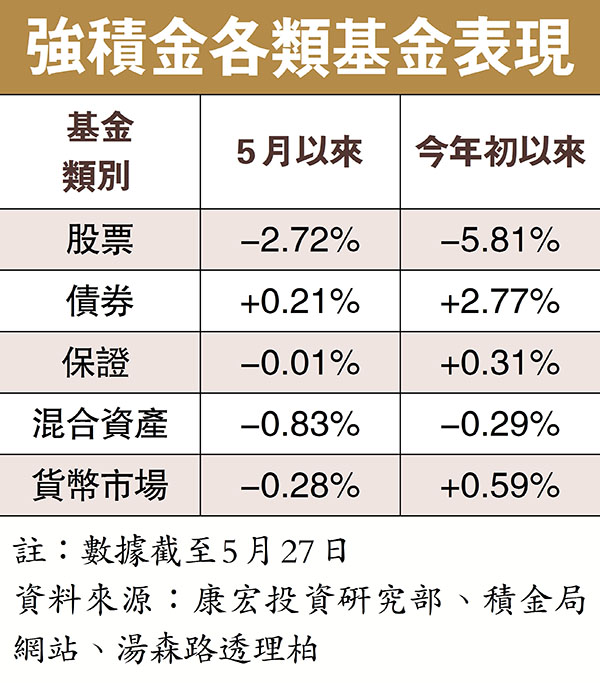 »´ä¤å¶×³ø°T ¨ü´f³Ì«á¤@©Pµo¤O¡A¡u¤½a¤ë¡v´äªÑ¶^´T·¥³t¦¬¯¶¡A¥´¤u¥Jªº±j¿nª÷¦¬´_¤£¤Ö¥¢¦a¡CºI¦Ü5¤ë27¤é¤î¡A±d§»MPFºî¦X«ü¼Æ³ø184.98ÂI¡A«ö¤ë¤U¶^1.55%¡FªÑ²¼«ü¼Æ³ø178.44ÂI¡A«ö¤ë¶^2.72%¡A¶]¿é¨ä¥L«ü¼Æ¡F¶Å¨é«ü¼Æ«h³ø152.89ÂI¡A«ö¤ë¤É0.21%¡C«ö¤µ¦~3¤ë¿nª÷§½³ø§i¤º¹µû¤Î¦Û¹µ¤H¤h¦X¦@275.7¸U¤Hpºâ¡A5¤ë¥÷«ö¤ë¤H§¡»k3,418¤¸¡A¦~ªì¦Ü¤µ¤H§¡»k6,046¤¸¡C