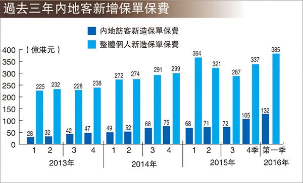 »´ä«OºÊ³Bªº¼Æ¾ÚÅã¥Ü¡A»´ä«OÀI·~¤µ¦~º©u¦V¤º¦a³X«È©Òµo¥Xªº«O³æ¡A·s³y«O³æ«O¶O¬°132»õ¤¸¡A¦û¤µ¦~º©u»´äÓ¤H·~°ÈªºÁ`·s³y«O³æ«O¶O¡]385»õ¤¸¡^ªº34.2%¡Cº©u¤º¦a³X«È·s³y«O³æ«O¶Oª÷ÃB¬°³sÄò²Ä¥|©u¤W¤É¡A¸û2015¦~²Ä¤@©uªº68»õ¤¸¡A¼Wªñ94%¡F¸û2015¦~²Ä¥|©uªº105»õ¤¸¡A¥ç¼W¥[26%¡C