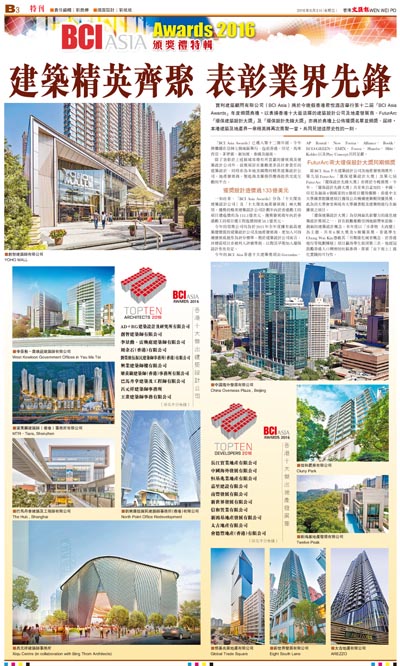 Ä_§Q«Ø¿vÅU°Ý¦³¤½¥q¡]BCI Asia¡^±N©ó¤µ±ß°²»´ä§g®®°s©±Á|¦æ²Ä¤Q¤G©¡¡uBCI Asia Awards¡v¦~«×¹{¼ú¨å§¡A¥Hªí´»´ä¤Q¤j³Ì¬¡ÅDªº«Ø¿v³]p¤½¥q¤Î¦a²£µo®i°Ó¡CFuturArc¡uÀô«O«Ø¿v³]p¤j¼ú¡v¤Î¡uÀô«O³]p¥ý¾W¤j¼ú¡v¥ç±N©ó¨å§¤W¤½§GÀò¼ú¦W³æ¨Ã¹{¼ú¡C©¡®É¡A¥»´ä«Ø¿v¤Î¦a²£¬É¤@²³ºë^±N¦A¦¸»ô»E¤@°ó¡A¦@¦P¨£ÃÒ³o¾ú¥v©Êªº¤@¨è¡C