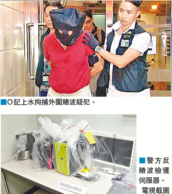 新界北總區反三合會行動組亦根據線報,前晚11時50分突擊搜查屯門良景h一目標單位,當場檢獲約700萬元波纜及數部電腦,一名姓陳(30歲)男子涉嫌非法收受賭注被捕。