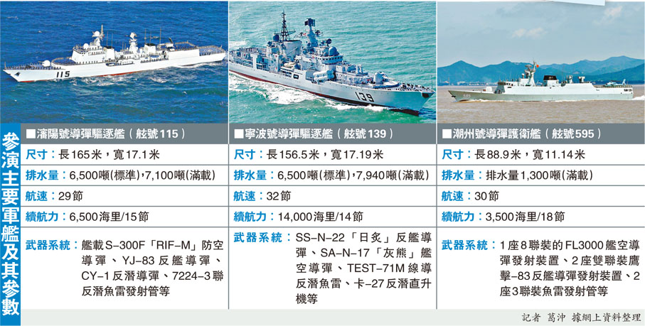 參演主要軍艦及其參數