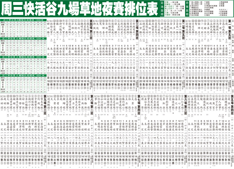 周三快活谷九場草地夜賽排位表