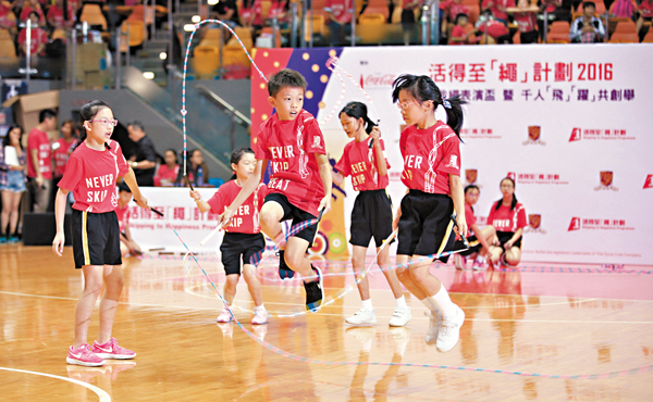 活得至「繩」計劃「花式跳繩表演盃2016」昨假旺角麥花臣場館舉行,吸引了來自42間中、小學,合共逾700名學生組成跳繩隊伍競逐各項殊榮。