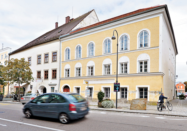 希特勒於1889年4月20日,生於接壤德國邊境的因河畔布勞瑙市一座3層高住宅,他父親經常在樓下酒吧消遣。1930年代希特勒掌權後,他的私人秘書收購該物業,把它變成朝聖地,收藏不少希特勒的畫作。1952年,物業回歸原業主波默家族手中,輾轉被用作圖書館、技術學校和日間護理中心。物業外現時放置一塊由奧地利集中營運來的巨石,刻上「為和平、自由及民主,向法西斯主義說不」等字句。