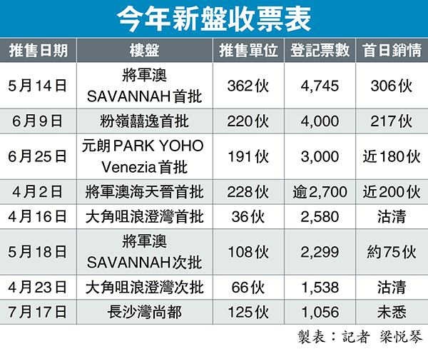 今年新盤收票表