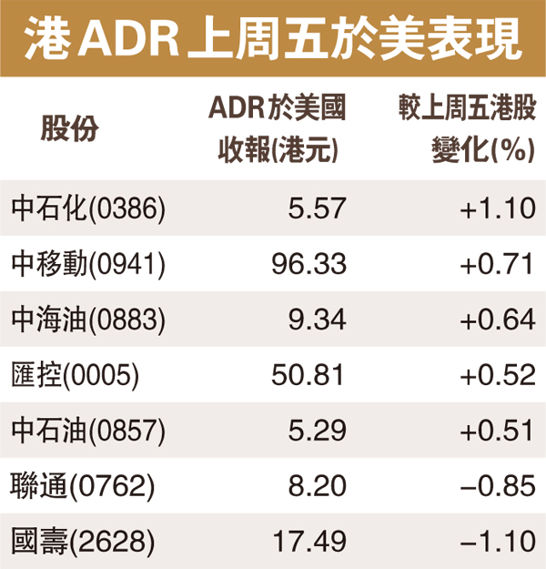 »´ä¤å¶×³ø°T ¡]°OªÌ ©P²Ð°ò¡^¬ü°ê¦¸©uGDP«ö©u¼Wªø1.2%¡A»·§C©ó¹w´Áªº2.5%¡A¥[¤W¤é¥¡¦æ¥¼¹ê¦æ¤j³W¼Ò¶q¼e¡A¬üªÑ¨üÀ£¡A¦ý¦b¬ü°ê¤W¥«ªº´äªÑ¹w°UÃÒ¨é(ADR)«o¾aáA¶×±±(0005)¸û´äªÑ¦¬¥«¤É0.5%¡A¤¤²¾°Ê(0941)¤É0.7%¡A¦A¥[¤WÄ˰T(0700)¤Î¤Í¨¹«OÀI(1299)¦b³õ¥~¥æ©ö¤]³y¦n¡A¥O¤µ¤é´äªÑ¦³±æ°ª¶}¬ù50ÂI¡C