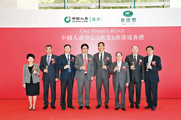 香港文匯報訊 會德豐與中國人壽保險(海外)昨日為紅磡One HarbourGate西座甲級寫字樓及商舖舉行落成典禮,並公佈分別命名為「中國人壽中心」A座及B座。物業已取得滿意紙,中國人壽(海外)即將進駐,並以此為香港營運總部。該公司於去年11月以58.5億元從會德豐購入物業。