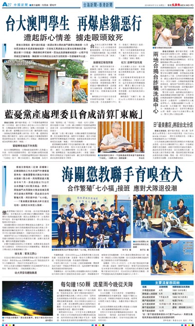 香港文匯報訊 據中通社報道,就讀台灣大學的澳門籍學生陳皓揚,5月份因涉嫌去年底虐殺貓被起訴,日前他又再虐殺台北某知名餐廳的店貓。據台媒11日報道,陳皓揚坦承犯案時,因為此前虐貓案被起訴,心情不佳而鎖定店貓報復。陳皓揚16日將在台北地方法院就第一宗虐貓案件出庭。