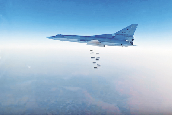 俄羅斯國防部表示,軍方動用圖-22M3遠程轟炸機及蘇-34轟炸機,在敘利亞拉塔基亞基地出發的戰機護航下,空襲武裝分子在阿勒頗及伊德利卜的據點,摧毀了5個主要軍火庫、多個訓練營及3個指揮中心。