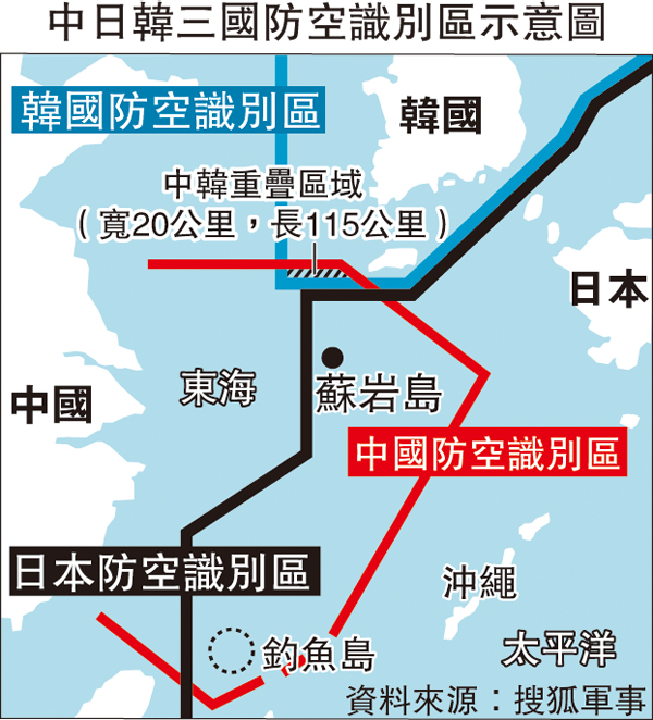 報道稱,此次中國軍機進入的「韓國防空識別區」,是和中國宣佈的防空識別區相重疊的區域。今年1月31日,中國軍機就曾經過中韓防空識別區的重疊區域,當時韓國戰鬥機沒有出動。