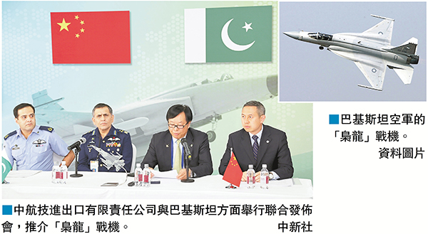 香港文匯報訊 據中新社報道,2016非洲航空航天防務展9月14日至18日在南非瓦特克盧夫空軍基地舉行。參展的中航技進出口有限責任公司與巴基斯坦軍方和政府高官15日舉行媒體見面會,攜手推介「梟龍」戰機,共同開拓國際市場。