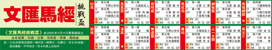 註:12位名家每次提供一場W及一條單Q、位置Q,共$30本錢,退出當輸,不可加注,有★代表上次貼中。