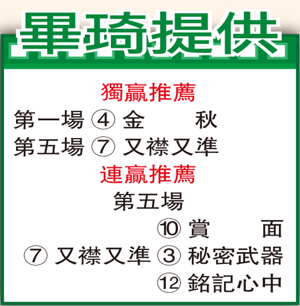 「又襟又準」戴頭罩助手踱一圈,收住韁控制步速跟馬慢行操,主動扯韁越行越現心火但卻全不浮躁,步低揚力充盈,精神暢旺,狀態更進一步。