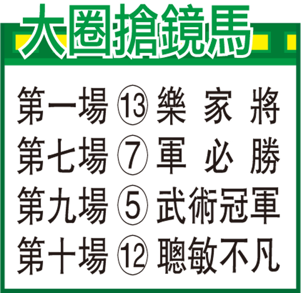 「樂家將」史卓豐試兩段,精神奕奕,今季復課以來明顯有好大進步,毛色潤澤,狀態方面已備有好水準,初出即可亂大局。