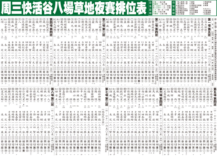 周三快活谷八場草地夜賽排位表