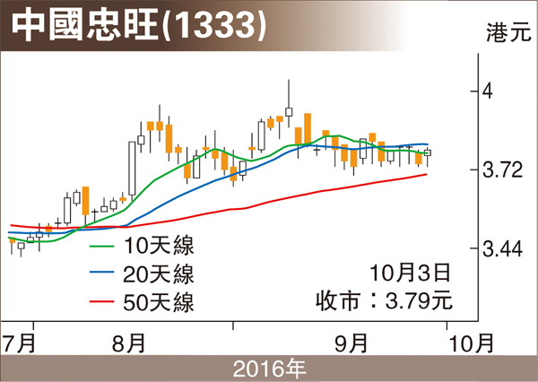 10月份首個交易日,港股一如預期大幅反彈,德銀危機淡化及美股持續升勢,成為港股大跌後獲承接力的主要因素。港股短線料在23,300/24,000上落,高息績優股續可作為趁低收集對象,中國忠旺(1333)便是其一。