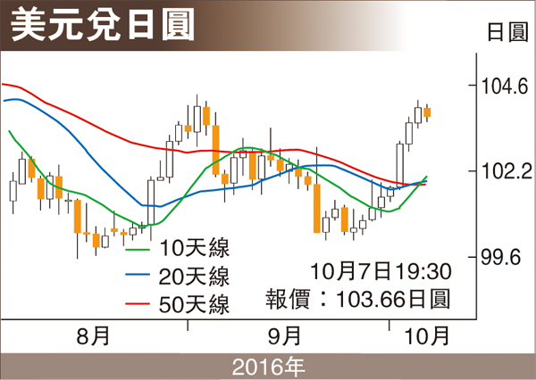 英鎊周五早段跌穿1.26美元水平後出現閃跌,一度下行至1.18美元水平,雖然稍後急速反彈,重上1.24美元水平,不過走勢依然偏弱,反映市場對英國脫歐談判前景略抱不安。受到英鎊急跌影響,英鎊兌日圓交叉匯價周五曾下挫至124水平附近4年低位,加上歐元兌日圓交叉匯價又表現偏軟,該因素將稍為限制日圓的跌幅,暫時限制美元兌日圓的升勢。