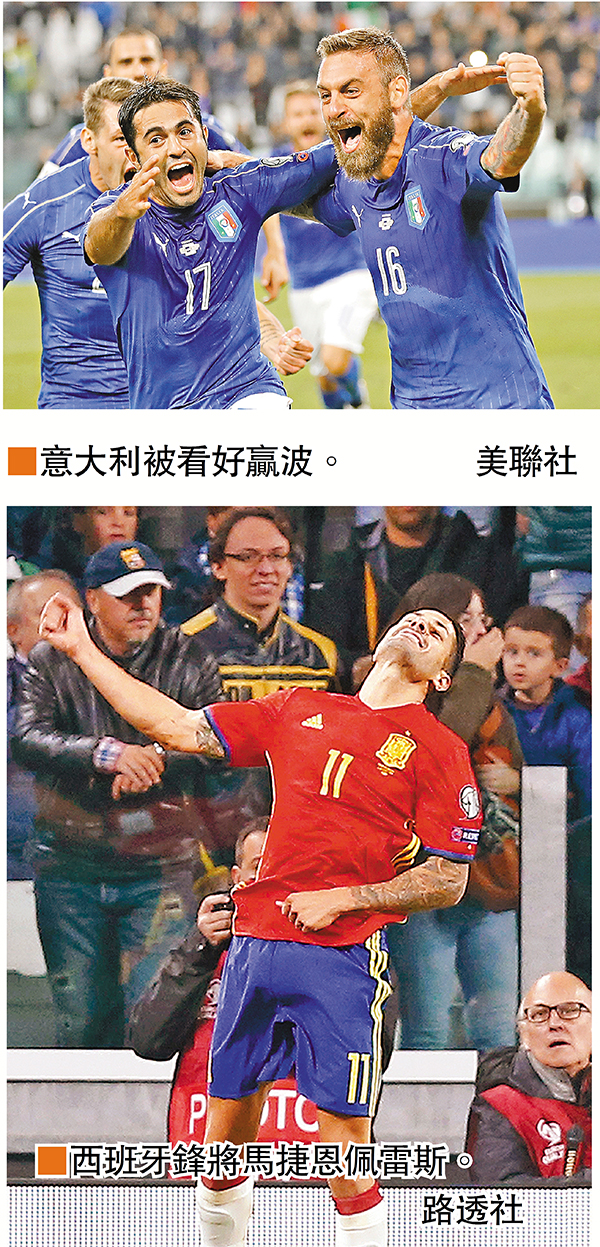 至於上仗賽和西班牙的意大利將客戰馬其頓(有線62及202台周一2:45a.m.直播)。馬其頓最近7場只得1勝6負,每一場都有失球,此番主場面對實力強勁的意大利,馬其頓實在無力獲勝。值得一提的是,就算意大利今仗贏波,與同樣很大機會贏波的西班牙同得7分,但因得失球差,只能排在西班牙之後。