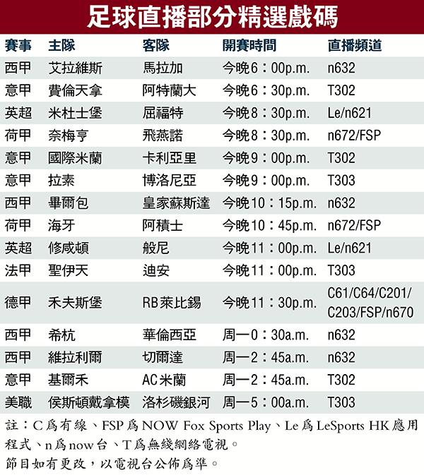 足球直播部分精選戲碼