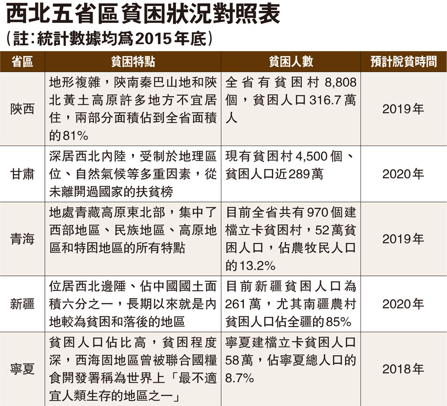 西北五省區貧困狀況對照表(註:統計數據均為2015年底)