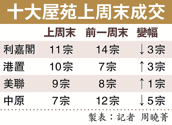 十大屋苑上周末成交