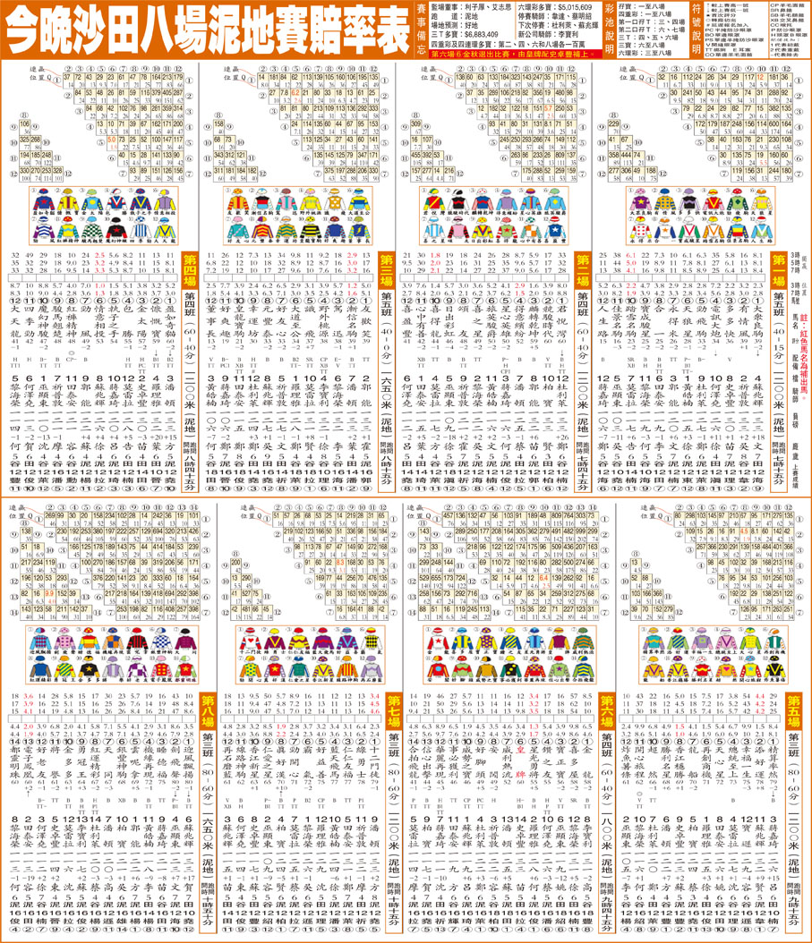 今晚沙田八場泥地賽賠率表
