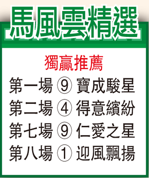 「添好運」助手踱,躁火馬越來越收斂,不浮不躁,身色皆靚充滿朝氣,相當醒神。