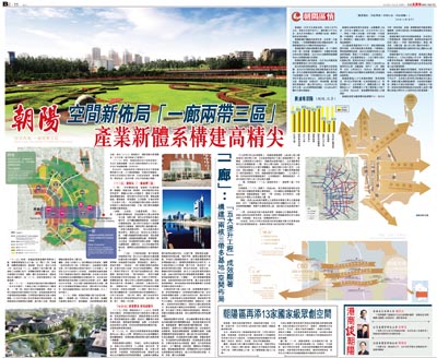 「一廊」,即沿機場高速、建國路-京通快速路、朝陽路、朝陽北路、廣渠路、京哈高速等向東延伸到區界,圍繞CBD核心功能提升、國家文化產業創新實驗區建設、農村城市化等重大任務,實施基礎設施、環境建設、產業發展、公共服務、社會治理等「五大提升工程」,高品質建設首都功能核心區與市行政副中心連接的城市廊道,打造「現代都市景觀與產業融合發展廊道」。